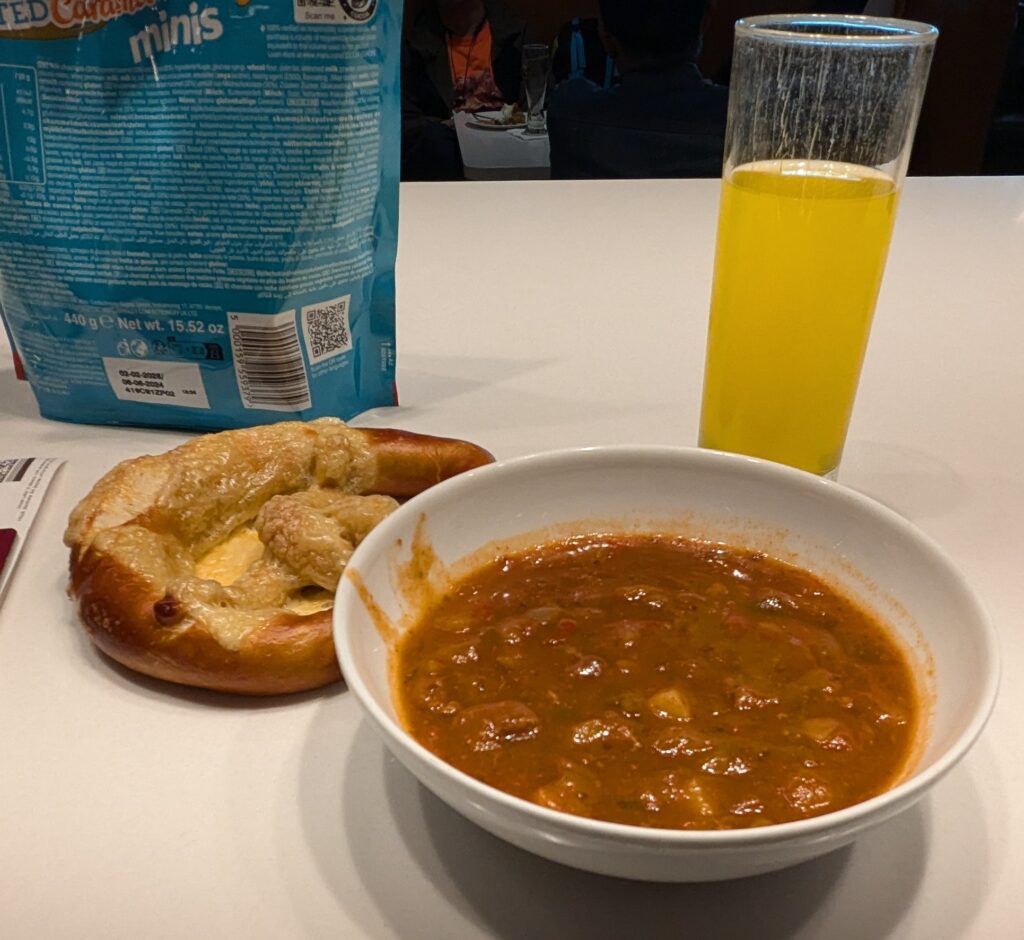 Da wir es uns nun erlaubt haben in der Business Class zu fliegen, ermöglichte uns das auch den Zutritt zur Business Class Lounge. Und was soll ich sagen. There’s no better way to wait for your Flugzeug. Bequeme Sessel, ein gutes Buffet aus kalten und warmen Speisen, Getränke in großer Auswahl und wenn man möchte Duschen und Schlafgelegenheiten. Wir haben hauptsächlich das Buffet in Anspruch genommen.