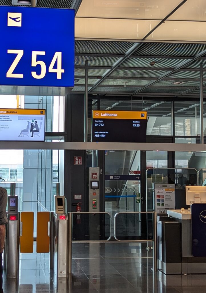 Danach ging’s dann bald im ersten Flugzeug unspektakulär nach Frankfurt am Main. Dort hatten wir fast 1,5 Stunden Zeit bis zum nächsten Flug. Und die haben wir genutzt. Erst natürlich einmal durch die automatische Passkontrolle und dann in Richtung Gate.