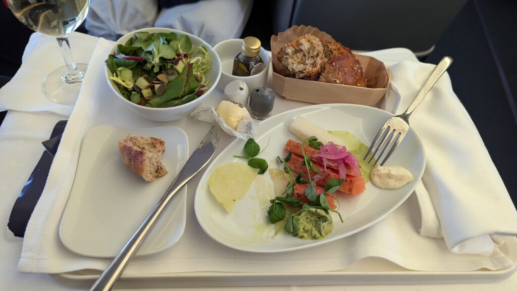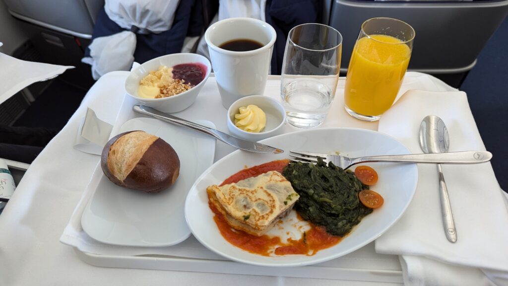 Der Start kam dann auch recht zügig und wir waren schnell in der Luft. Auch wenn die gesamte Flugzeit circa 11 Stunden betragen sollte, wurde keine Zeit vergeudet und es gab recht bald Abendessen. Im folgenden einige Impressionen davon.