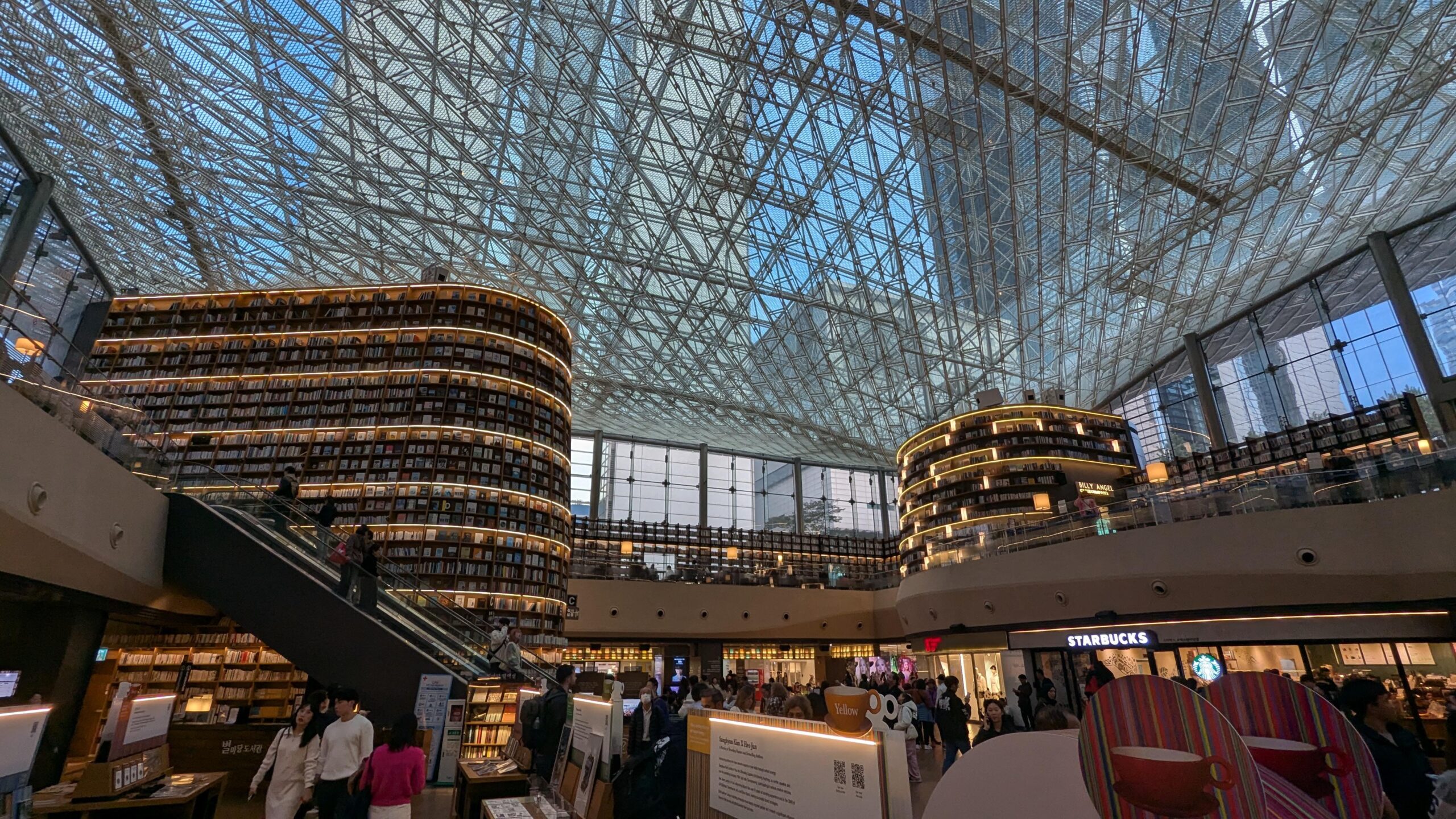 Die zweite Sehenswürdigkeit ist die Bibliothek, Starfield Library, am Rande der Mall. Als Bibliothek denkbar ungeeignet wegen der vielen Menschen dort, ist sie aber sehr schön anzuschauen.