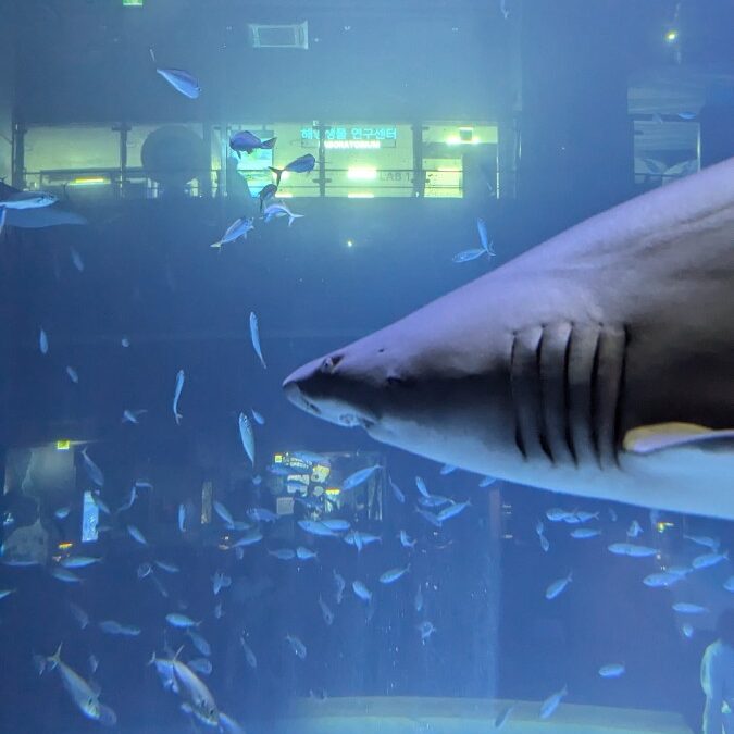 Da es nicht sonderlich gemütlich war und die paar Attraktionen auch mit warten im Regen verbunden war, beschlossen wir weiter zu ziehen und uns noch das Lotte Aquarium anzuschauen. Das befindet sich einige Gehminuten entfernt im Untergeschoss der Lotte Mall. Grundsätzlich befindet sich so viel in Untergeschossen hier.