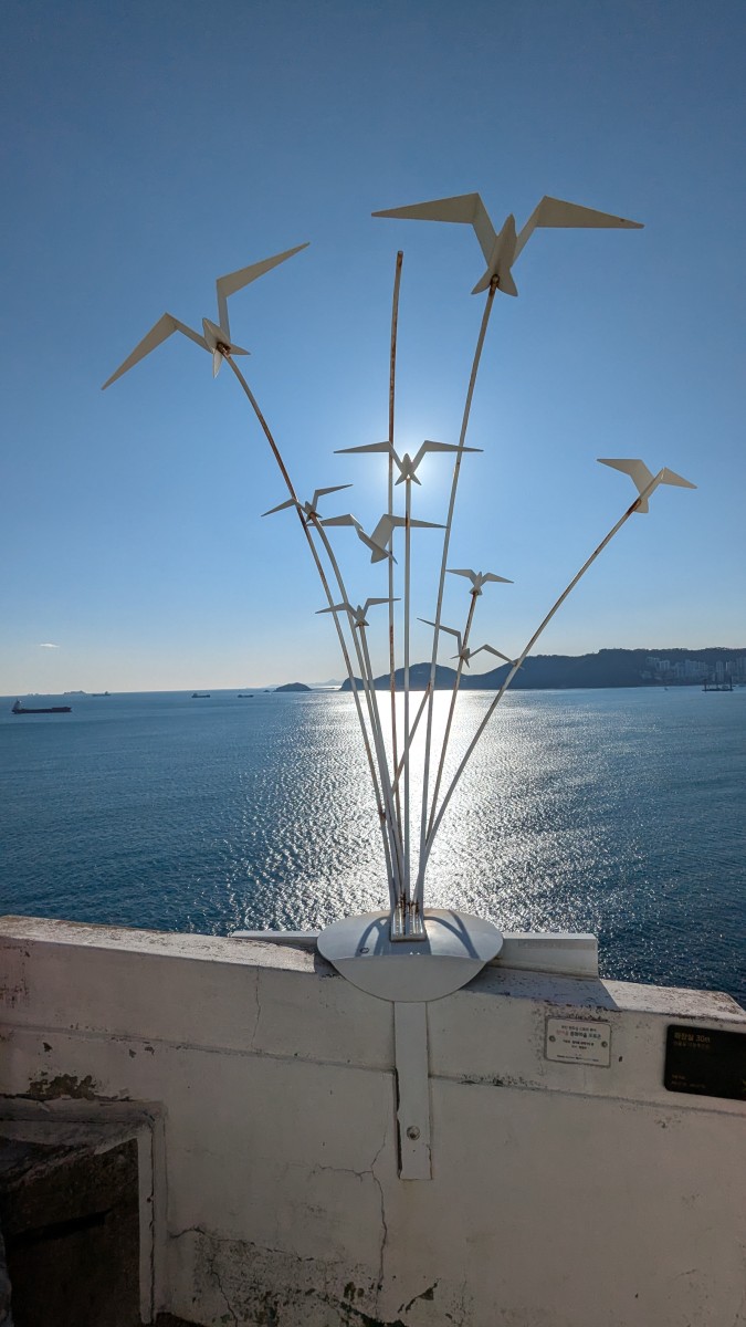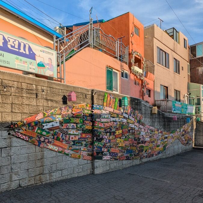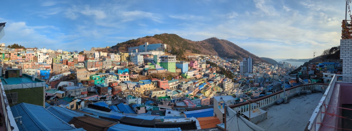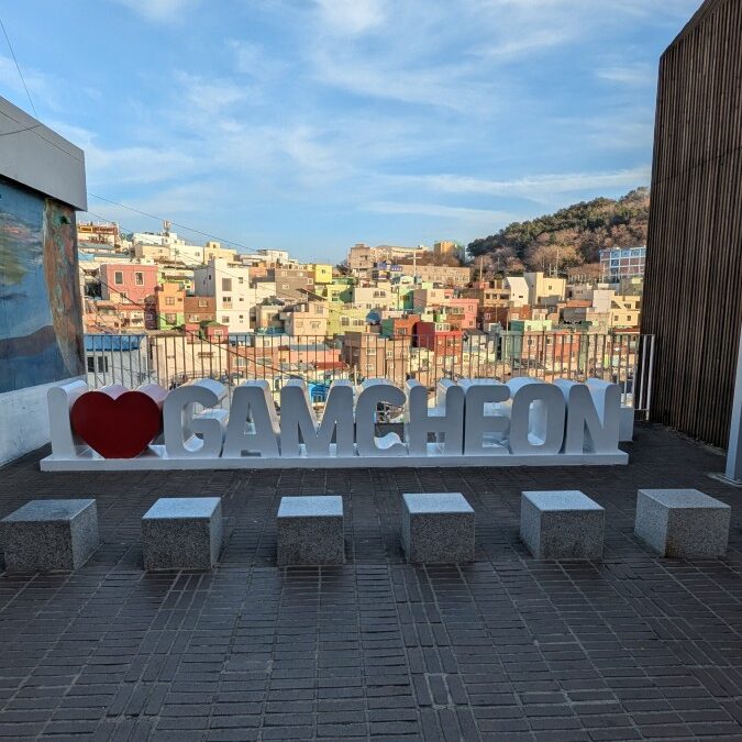 Das erste ist Gamcheon. Ein Dort welches in den 1920ern erbaut wurde. Es erlebte eine wendungsreiche Geschichte und bekam vor 15 Jahren dann Hilfe der Stadt und des Staats. Seitdem wurde es aufgebaut ein kulturelles Zentrum der Stadt zu werden. Mit Galerien und spannenden Einblicken zieht man seitdem erfolgreich Touristen an. Man kann sowohl oberhalb der meisten Häuser entlang gehen, inklusive Cafés, Souvenirshops und Aussichtspunkten. Außerdem werden die Straßen von Wandgemälden geschmückt.